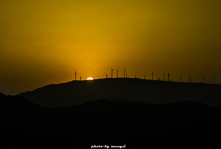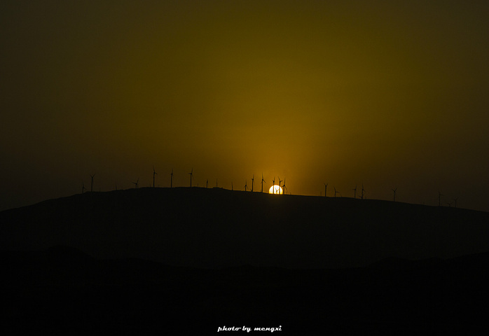 这次的北京去兰州的火车上,我也没睡的很实,早上四点多的时候就起来洗漱,在封闭门处抽烟,看着天一点一点亮起来,忽然看到一个圆球慢慢的跃上山坡,我赶紧回去取相机,长焦都没来得及换,50定缩小光圈拍到了这个我很喜欢的日出风车。