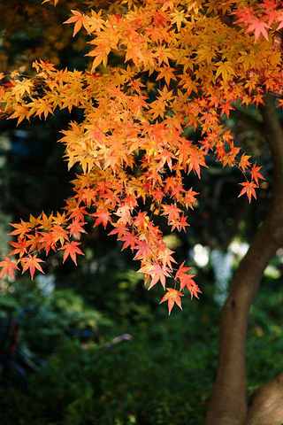 最佳观赏期:进入11月,不同种类的槭树树叶将由橙变红,如火焰般烂漫,令人迷醉。只要仔细观察即可发现,常见槭树种类中,秋叶红艳的有鸡爪槭、三角枫、五角枫;秋叶黄色的有梓叶槭、元宝槭等;有些品种如红枫叶色常年红色或紫红色,艳丽夺目。
