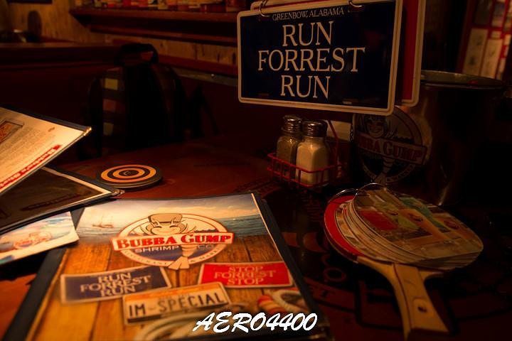 美国的海鲜连锁餐厅阿甘虾店(Bubba Gump Shrimp )店用晚餐。