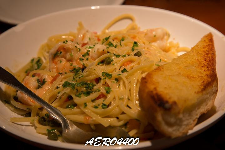 Shrimp Pasta非常的好吃,陪有鲜美的面包
