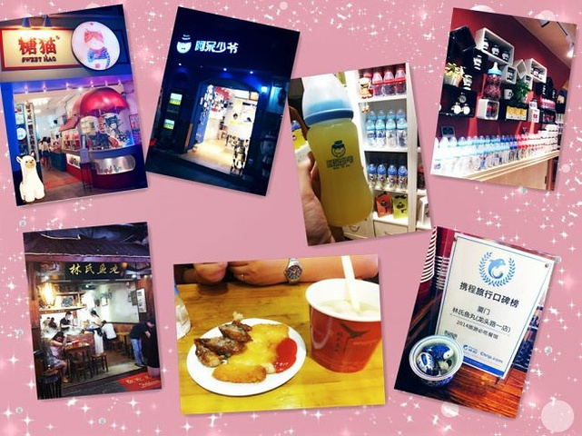 12:50到达厦门高崎机场飞机后,拿一张机场免费的厦门手绘地图,出门右转乘机场-轮渡大巴,10元/人,25分钟到达轮渡码头,可以在周围先解决个午餐,我俩选择吃了重庆鸡公煲,我承认厦门第一餐选择吃这个,很奇葩,点了个“鸡鸡蛙蛙煲”,好吃耶,还喝到了传说中好喝的仙草蜜,呵呵~不能吃的太饱,鼓浪屿的好吃的还在等着我们呢,坐轮渡登岛,8元/人,往返的哦,记得保存好塑料船牌,建议上船后多花1元去二楼,有座还不挤,说实话现在旅游景点淡季也不淡啊,貌似2014.10.20起调整至30元/人往返喽~上岛直奔酒店办入住,放行李,休息片刻,我们就出去觅食啦,龙头路的小吃们,我们来喽~~
