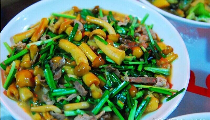 这个蒜苔炒鱿鱼,也是我的大爱,蒜苔和鱿鱼都特别嫩。这道菜最开始是看到隔壁桌有人点的,我们给大姐说明天我们也要点这个。自从点了这个之后 ,每顿饭都必点啊。