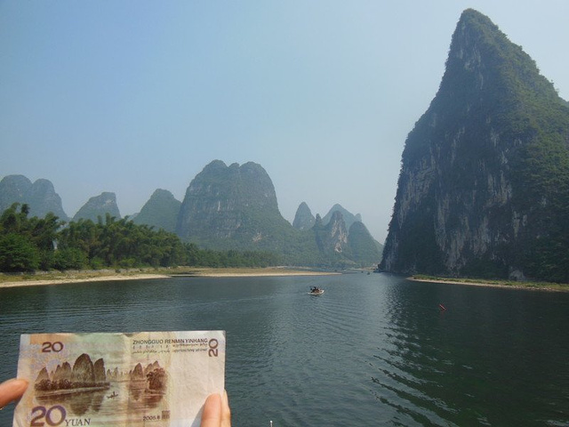 这个是另一个著名景点“黄布倒影”,就是20元人民币的背景哦,我从船舱跑出来的有点晚,不过依稀可见哦~