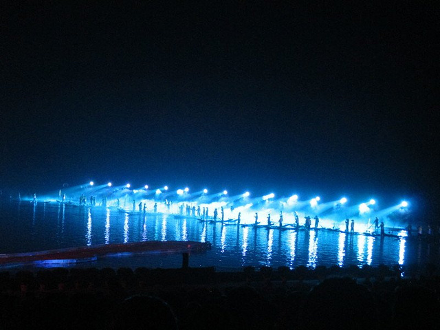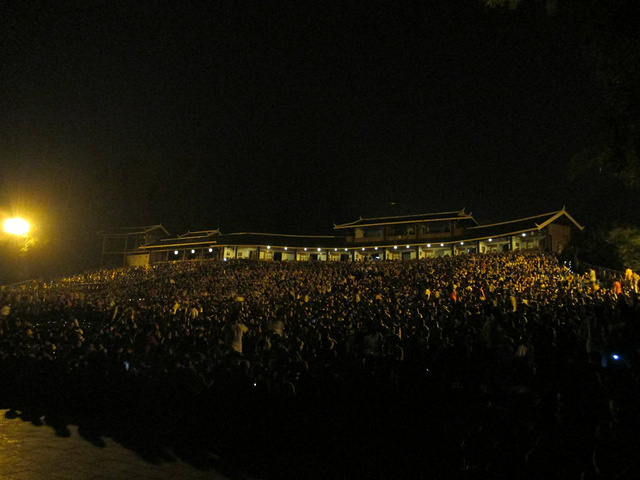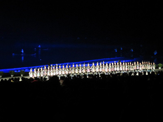 提前有预定,晚上6点左右专车带我们去观看来桂林必看的,大名鼎鼎张艺谋导演的印象系列,大型实体山水演出“印象刘三姐”,我特意没有提前跟爸妈透露它的表演形式,搞得挺神秘的样子,去的路上老妈很好奇,一直还追问我是什么样子的呢,呵呵~