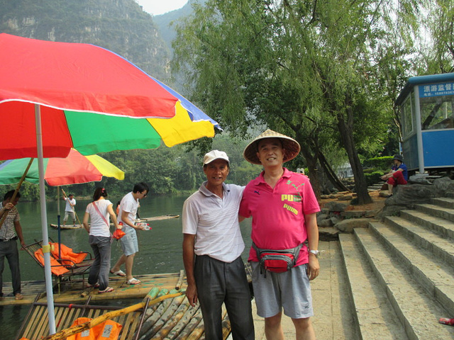 老爸和他们那个竹筏的师傅合影,还把人帽子戴上了,呵呵~