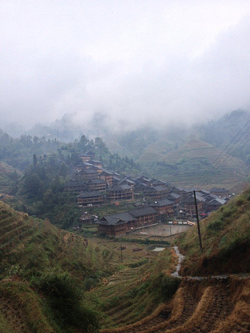 客栈露台上欣赏到的梯田美景,那些都是木质吊脚楼喽,我们住的就是那样的哦,就是比你们高,哈哈~