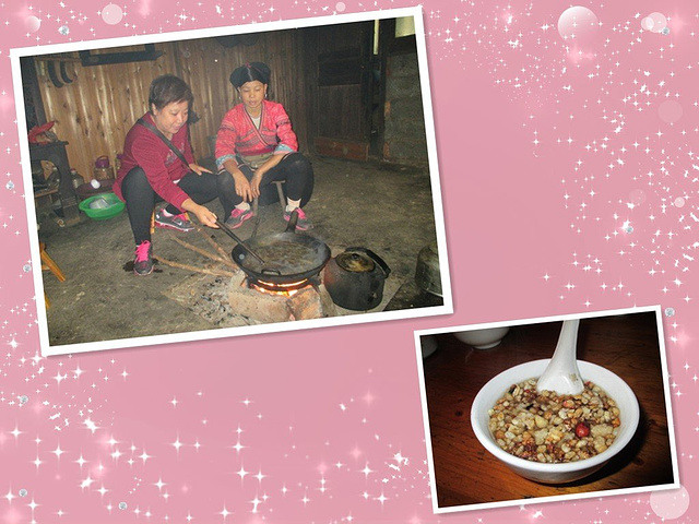 妈妈和客栈瑶族女主人一起煮油茶,味道还不错~