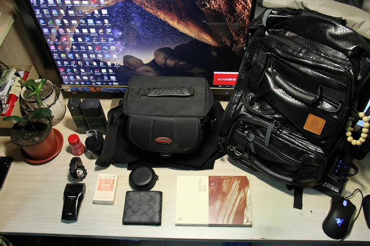 行李就是这么多啦,一本书,一个相机,几个洗漱用品。旁边几盆花可不是哦=。=是我养的两盆小兰,一个已经快不行了。QAQ