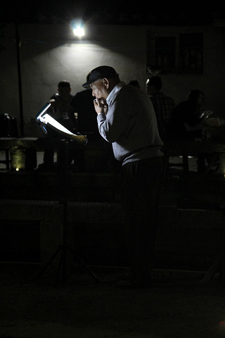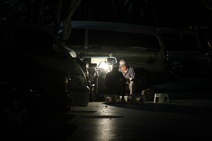几个修理工在灯下聊天