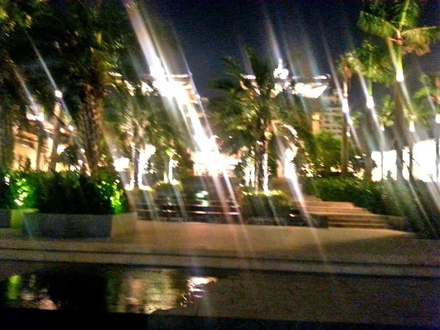 晚餐过后再次去逛酒店人工河两岸的景致。夜里微凉,披肩好用!