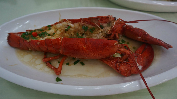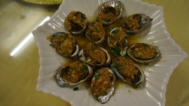 门口介绍海鲜的东北老爷们那没话说, 把整个的海鲜池里的海鲜全部介绍了一遍。 门口第一个海鲜缸里放着大龙虾,生猛的钳子被红绳牢牢绑住。一副很不服气还带点儿任性的态度看着我。哈哈。就吃你了,咋的还不服? 挑了一斤芒果螺,一斤虾,11个鲍鱼,(不要问我为什么是11个,我也不知道。。。)就这样选海鲜结束,接下来就是大开吃戒了。。。