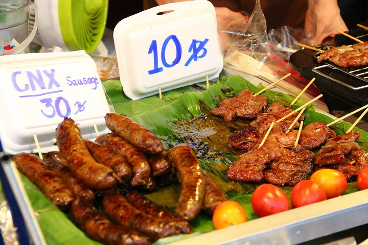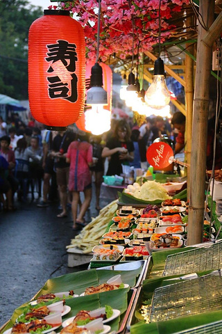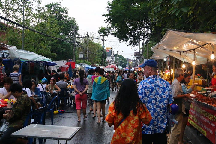 之后一路沿着城墙走一路泼水,碰到巡游花车,还有清迈小姐选美车队,我不敢拿相机出来,从塔佩门拐进古城,就到了著名的周末夜市,夜市一般下午4:30开始到深夜,说明周末,当然只有礼拜六和礼拜天才有