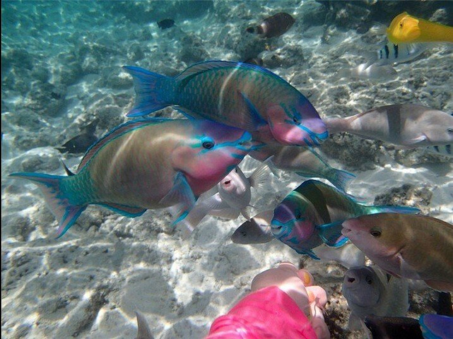 第二天开始我们的时间就比较自由喽!!!呜哈哈!来塞班最好的就是自由!!这个呢 我们想去哪就去哪里!海洋就带着我们去哪里,这才是我的旅行!!我们去海底漫步啦!!就是在脑袋上罩衫一个太空员脑袋上那东西,别看我水性不好,站照样下海,看珊瑚,看鱼,别提多美了!!!其实我特想在海底拍照,可惜小女子银子穷呀没舍得,建议银子富裕的一定要在海底拍照!!!!美啊美!!然后呢我们穿着比基尼(害羞害羞)去海边照美照了呼呼~还玩了香蕉船!!才15美金游!便宜一定要玩嘿嘿!!接下来呢!!我最喜欢的来喽!!!DFS冲哇!!!喜欢什么买什么!我买了香水,化妆品,关键是给同事带了好多哇!!便宜哇!大牌多多哇!!!我们还去周围逛了一圈,看了有点保健品和7D芒果干之类的东西,9922的东西确实挺便宜的,大家可以直接我们买了一些深海鱼油(6.25美金/瓶,300粒)、善存片(9.25美金/瓶,300粒)等,芒果干是19美元12包,记得一定买一点,回来不管是自己吃还是送人都很好,我们同事一致称赞味道很棒。开心开心!晚饭我们吃的海鲜餐,椰子蟹,太平洋深海龙虾,吃好多呢!!