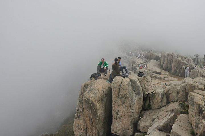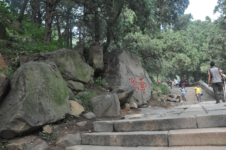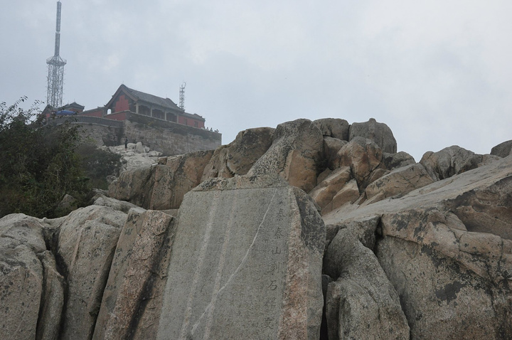 这个照片的意义就在于证明,我们来过,这里是泰山山顶!因为人太多,挤不上去拍照,就只能光照石头了!