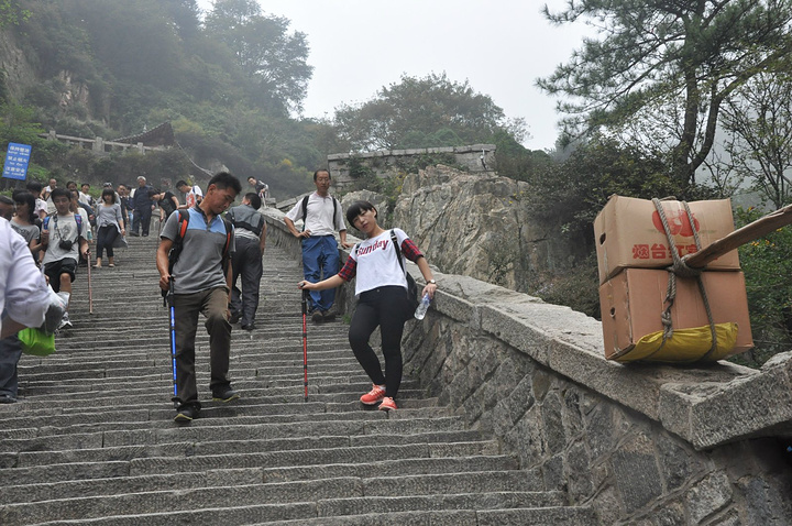亮点在旁边的挑山工上,据说挑夫们挑的可都是200多斤的种量呢,不由的发自内心点个赞!