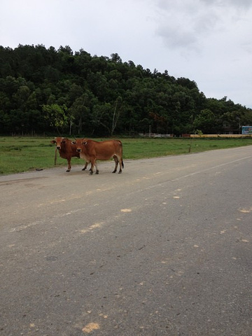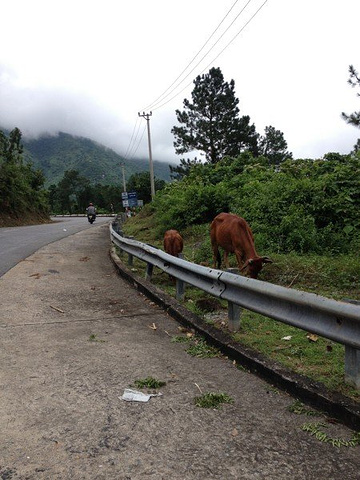 在岘港城里吃饱喝足,我们继续出发出城往海云岭而去。。。骑车路上遇到的老牛,越南目前为止没怎么开发,还是挺原生态的一路往前,向海云岭前进路上不时有老牛出现老牛们在路边吃草,我们在往前骑行半路休息看海边的全景来自游记骑着摩托游越南