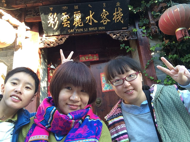 客栈留念,入住的第二天听说老板要卖客栈,我们三人都心动啦,哈哈。以后的我们说不定就是客栈老板或老板娘啦!