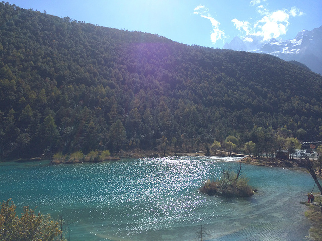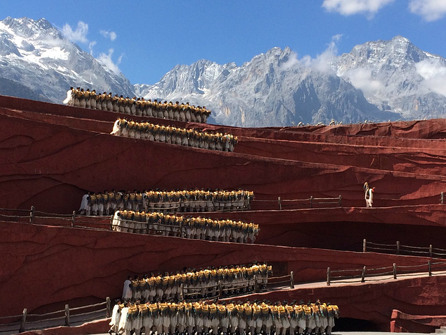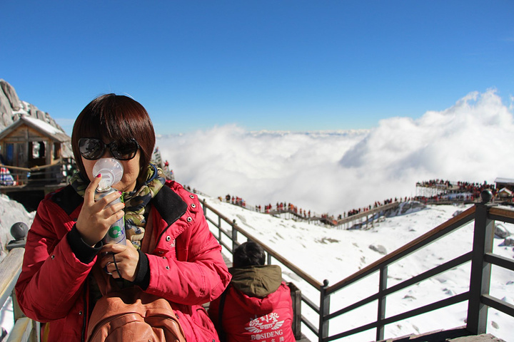 经过一天的休整养息,我们今天出发去玉龙雪山。之前也做了功课,咨询客栈老板,比较之后决定在淘宝参团,“丽江西域旅行社”品质团,576/人。在当地参加一日团还是不错的,羽绒服,氧气瓶都有提供。从东北来的我们对于雪山的寒冷没有丝毫的感受,但氧气对我来说是非常重要,到海拔4546的时候,我基本是一步一吸了,鉴于这样的身体素质,我决定就停留在此啦。同行的小瘦子秦宝还是很厉害的,但时间不允许就没有继续往上走,有些遗憾啊。雪山的壮丽让我震撼,《印象丽江》的演出让我热泪盈眶,蓝月谷的美让我迷恋,我只能说,不虚此行!