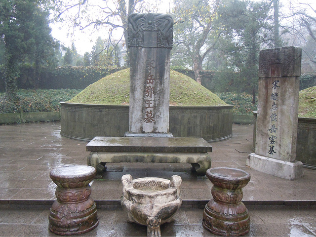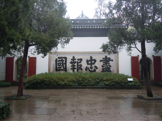 (为什么是尽忠报国而不是精忠报国也有一段故事~~不告诉你,让你自己去摸索吧)这四格像也有很多的故事..........据说是四大才子的作品.....不太清楚,跟在人家旅游团后面偷听的.....来自游记烟雨杭州