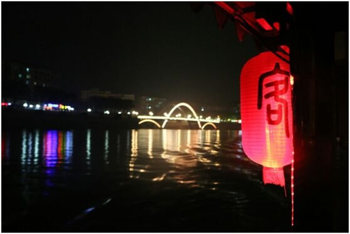 透过水面上的朦胧雾气,看到的是船头悬挂的红灯笼,不过分鲜艳,不过分张扬,是客都独有的含蓄。随波而走,风来则动,只是那舒缓迷离的红色,让人挪不开眼睛。