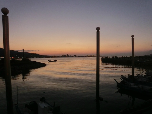 淡水码头夕阳照 渔船还在捕捞呢,虽然不知道在捞些什么