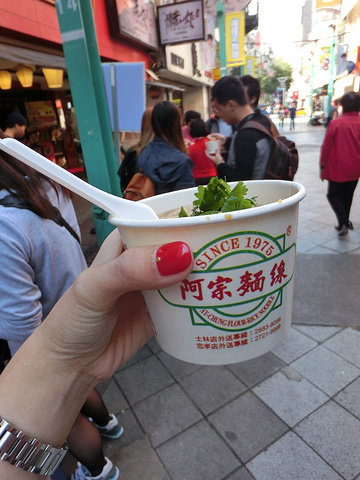 阿宗面线,就一个小门面,大家都捧着站着吃