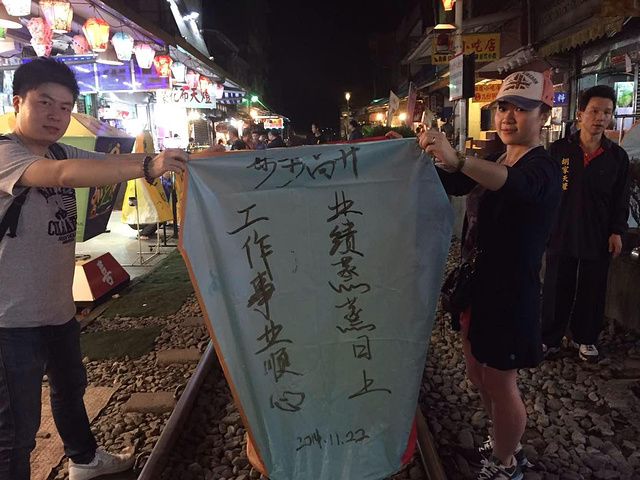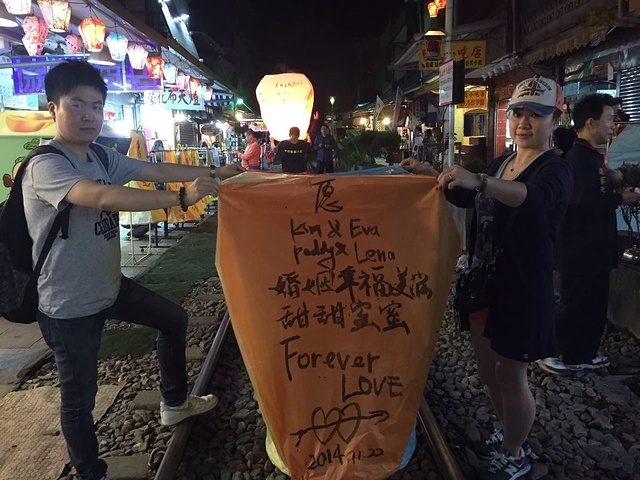 Kim和Eva去了十分放天灯,还帮我们一起许愿,感谢!