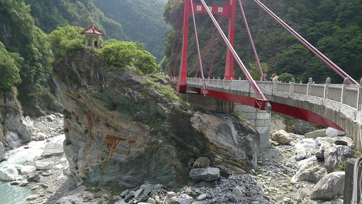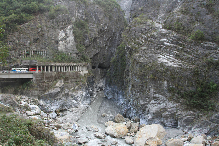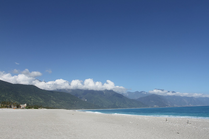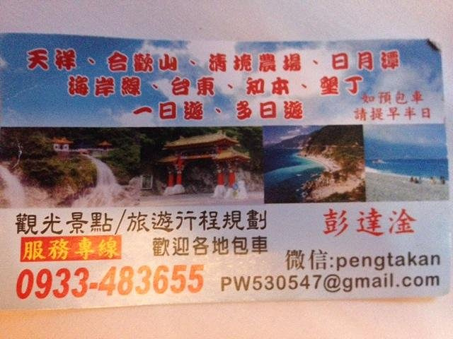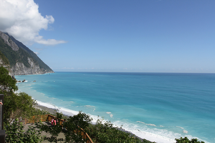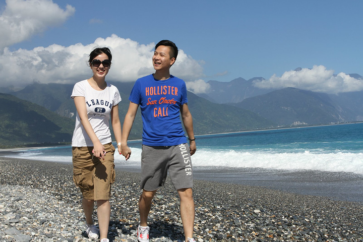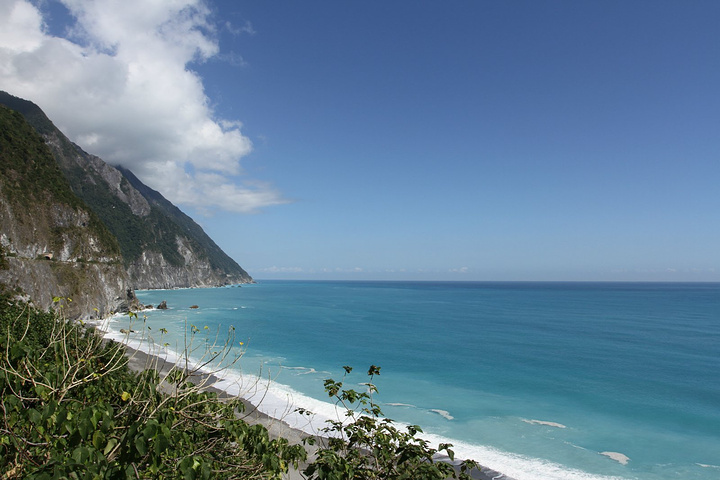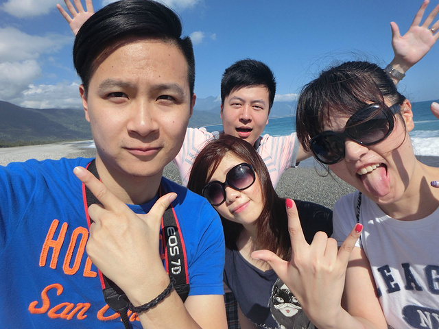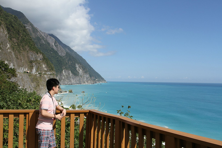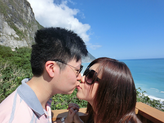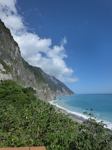 早上8点起床吃早饭,这里的早饭是台湾行中最好吃的,嘻嘻。10点包车师傅彭师傅准时来接我们,师傅是慢热型的,刚开始脸绷着,说话也是问一句答一句,渐渐地就我们打成一片,还给我们看他微信中以前客人拍的照片,介绍了好多七星潭、清水断崖、太鲁阁的历史故事和名字由来,彭师傅是位残疾人士,年轻时因为骑机车造成左腿残疾,但他很乐观,也算开朗的。我们第一站还是七星潭,白天的七星潭景色比傍晚的要美,就是太阳晒的有点热,接着去了清水断崖,高山断崖直接连着太平洋,山上的公路是人工开凿出来的,感叹!余下的时间就进入太鲁阁国家公园了,整个公园其实非常大,庆幸有包车,师傅带我们去一个个景点,告诉我们哪里可以下去沿步道走一段,哪里有好看的风景拍照,历史故事等等,中午带我们去吃午餐,本以为就一把的旅游餐,没想到味道还真不错,和国内的一些没法比。等到最后下山时已经5点了,天色也暗了,师傅直接送我们到自强夜市,还特意提醒我们要吃水果去市场里买,又新鲜又便宜,夜市里切好的一般较贵,整个一天的包车费用是2800新台币(清水断崖+太鲁阁),如不去清水断崖可以便宜300新台币,个人感觉还是很超值,既有包车又有导游。因为和彭师傅相处的很愉快,所以明天的包车去垦丁也决定用他的车,而且他的价格也是最便宜的。(彭师傅6500新台币,昨天的taxi师傅6800新台币,民宿报价8000新台币)晚饭就在自强夜市解决了,第一烧烤、棺材板、大牛排,统统打包回家吃,四人边吃边麻将哈哈!