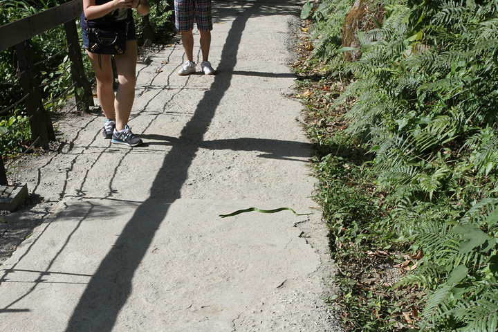 步道中遇小青蛇拦路,被它吓一跳
