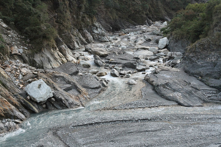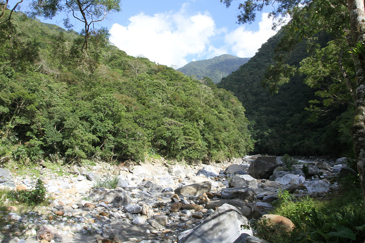 汛期的话可以看见河流从山间穿过,现在只有巨石河床