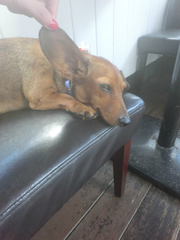 民宿老板养的腊肠狗,很温顺,随便怎么玩弄