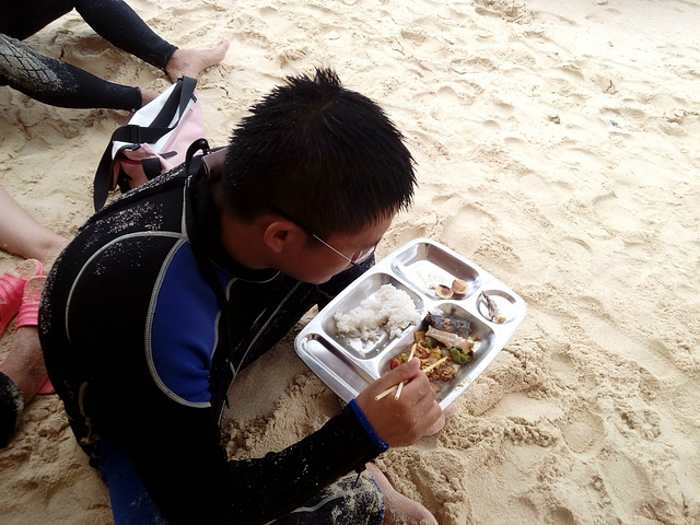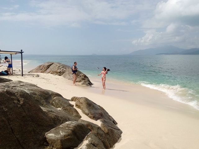 加井岛果然很原始,连换衣服的地方都没有,上个洗手间还得找树洞解决,破渔船乘风破浪真刺激,中餐都是附近的村民做好运上岛的,尽管很简单,但是又是浮潜又是深潜的我们真是饿坏了,老公不要脸的加了三次饭,晚上的烟花篝火晚会还没玩尽兴,朋友们都说这才是真正感觉像上了个荒岛,虽然条件很恶劣,但是还是很值得体验的。
