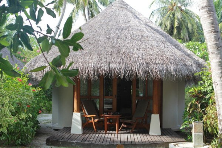 住的话 我们是住的两沙两水 房间都挺舒服哒 送的蜜月套餐的布置也很温馨呢 哈哈这个就是传说中的沙屋啦 隐私性都挺好的噢 这边的建筑上面都是用这种草盖的 感觉挺复古的 哈哈 个人更喜欢水屋噢来自游记马尔代夫满月岛 婚纱照分享 附美图