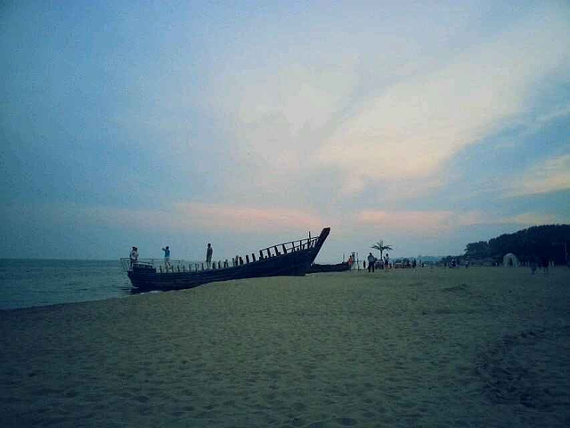 躺在沙滩上,望着纯净的天空,闻着海水的味道,听着海浪的拍击声, 微风拂面、霞光淡淡,闭上眼睛尽情的吸气呼气……惬意 ,没霾的,呵呵……