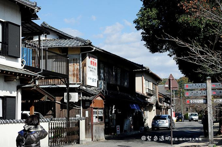桥旁边的小町,依然有浓浓的旧时建筑风味。樱花季时,小町旁的樱花树会枝繁叶茂,开出绚丽的樱花,为锦带桥多天一抹娇羞。