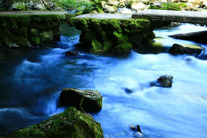 沿着溪谷走一路都是水景,庆幸带了三脚架,一路拍,到中午1点多在景区吃了个炒粉15元,不算太贵,然后就坐景区的观光车到水上森林。