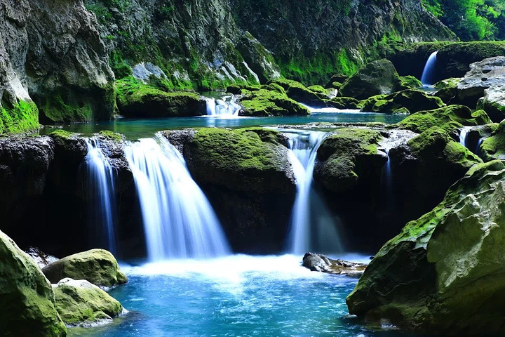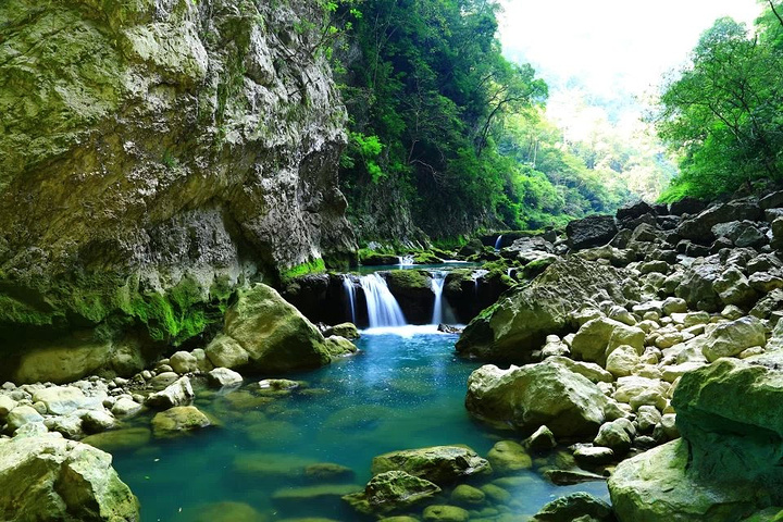 68级跌水瀑布——涵碧潭上游长1.6公里的狭窄山谷里,沿高高低低的河床,错落着68级瀑布和跌水: