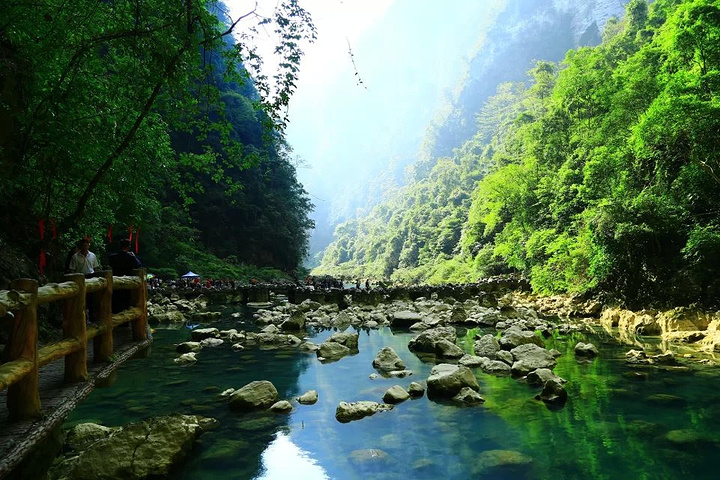 我们大概上午10点半这样到达小七孔景区,我想这里如果早上7-8点这样到达景区游玩会更美,因为早上溪谷的会有飘渺的晨雾,拍照会更美更加梦幻。所以跟旅行团七早八早也有好处,自助游,自驾游太自由睡太晚起来好景色不等人了。