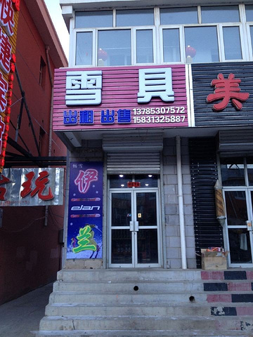 到崇礼县10点半,开始寻找之前联系过的雪具租赁店(畅雪雪具租赁店),到店后和老板商讨雪具租赁价格(雪板、雪鞋、雪仗),最终以每套90元成交后年轻帅气的店主开始给大家调试装备,调试完毕后交租赁押金时有点懵,原本想着押金每套也就5、6百元,但店主说装备都是新的几乎没有使用过,所以13套雪具押金3万元(幸好朋友卡中有足够的RMB)。在此提醒各位,雪场中也可以租赁雪具但每套价格要贵50左右,每套押金通常在500-600元。在外面租赁雪具是按整天算的,雪场里租赁雪具是按小时算的(长城岭雪场除外)。至于雪服、手套、头盔、眼镜一类的物品在县城里租和在雪场里租价位差不多。