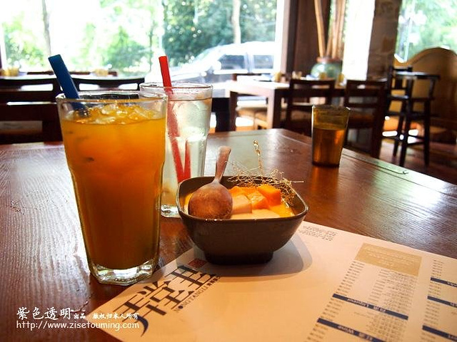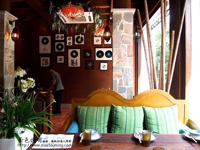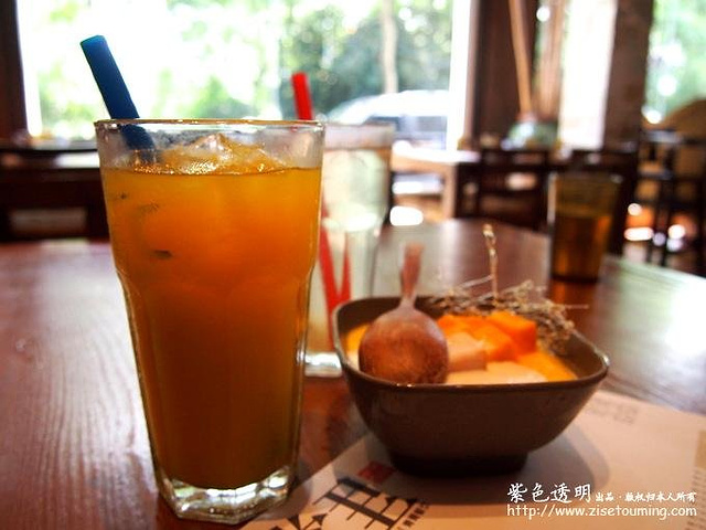 我们到达弄堂里餐厅的时间比预期早了一些,上午10点多一点,人家还没有营业呢。不过没关系,你可以进店选个角落坐下,吹着空调,隔着落地窗,窗外小竹林,再品着西湖绿茶或者来份甜品,感受一下远离喧嚣后宁静的心境。亦或者跟我一样,打开笔记本,上网团个优惠劵,等结账的时候一出示,连钱都不用直接付了,哈哈。
