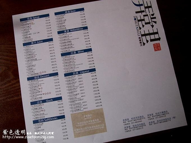中午11点开餐,不知道杭州的餐厅点餐单是不是都是这样的,弄堂里、新白鹿、绿茶都是这种点餐单,难道是不约而同?