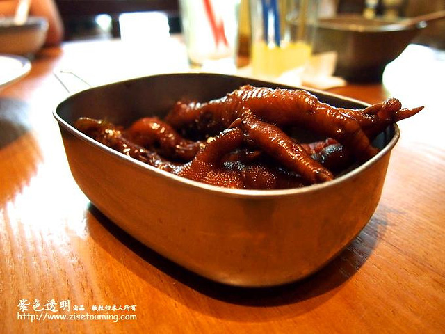 卤鸡爪,4元一只,店内的招牌菜。用怀旧的不锈钢饭盒做成器,怀旧啊。这个菜推荐,鸡爪很肉乎,有咬头。