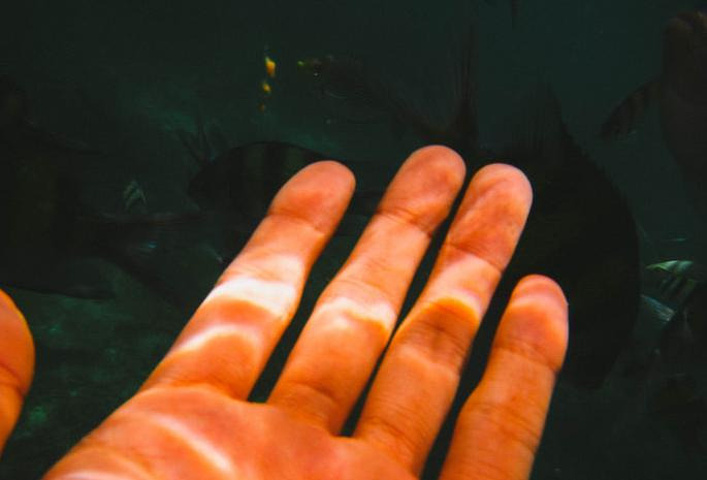 四面八方的鱼就 唰 的一下在你周围聚拢