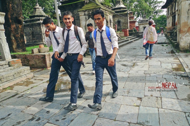 继续沿台阶登上高台,可以到达山顶的乔罗迦陀寺(GORAKHNATH),非印度教徒不得入内,是红白相间的印度风格神殿,前方耸立着湿婆神的三叉戟,周围是小佛塔,湿婆的雕像随处可见,各个方位都竖立着林迦,同样的是,猴子自由自在的穿梭其中,这里相对帕斯帕提那要安静许多,游人不多,多数是当地人。