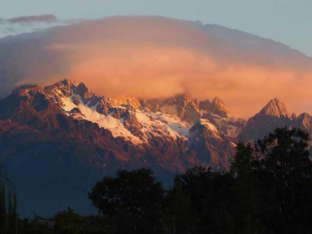 在静静等待太阳 从山的那天升起,照耀在雪山上。