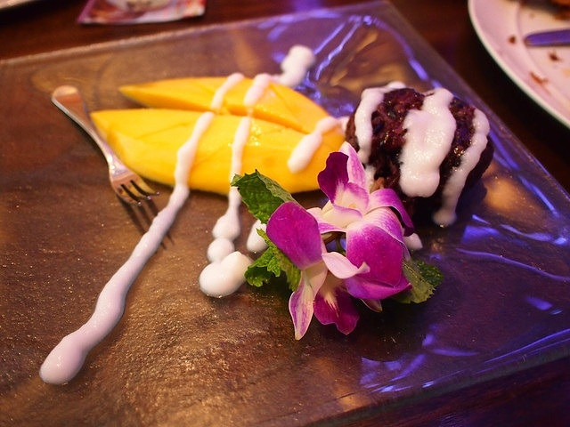 又來經典泰式甜點,芒果糯米,不過這次是紫米, 雖然配的不是白糯米,但芒果配上紫米的口感同樣不錯吃! :)