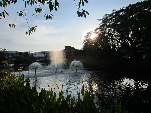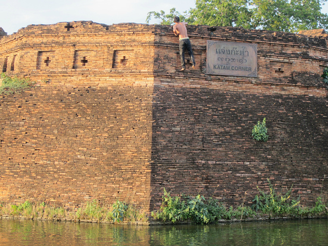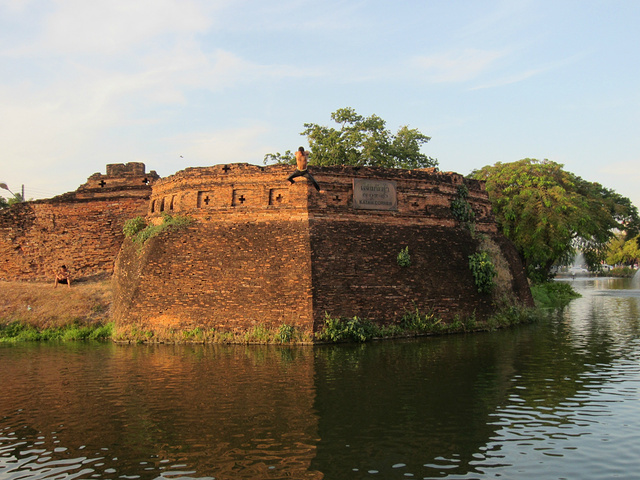护城河的水闸,katam意思是捕捉动物,这里由于是古时两条水道交汇处,鱼类丰富,人们在此放网捕鱼,因而得名。护城河的景致很好,无论清晨或傍晚,慢慢走在河边,感受着清迈这座小城的宁静与喧闹,是件乐事。