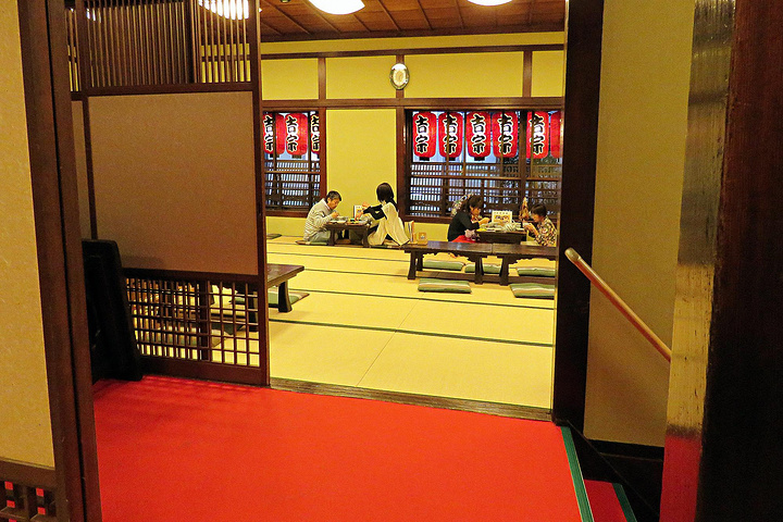 跟随领位的小姐姐来到二层,考虑到我这浴衣加身的,也不太好盘腿儿坐,所以我们选择了隔壁那种可以把腿放进桌子下面下沉格子里的桌子。