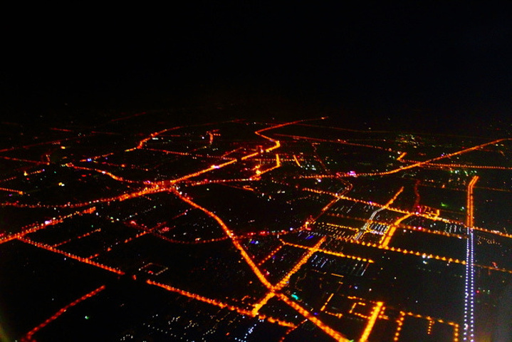 第一次不是仰望星星,而是俯视星星,感觉好特别嘻~ 戴着耳机听着五月天的《星空》,看着窗外的星空,那一刻真的感觉好知足。 >^<灰机快降到地面的时候,俯瞰GZ这个"金碧辉煌"的城市,虽然好看,但有一种“与我无关的繁华”的感觉╯▽╰ 不过,由于最后2天感冒了,最后灰机降落时候,头和耳朵特痛,坏了我的雅致 ≥▂≤