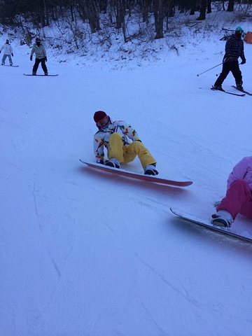 由于第一次学习滑雪,难免会摔一跤~~~ 还好雪很厚,屁股不是很痛^^
